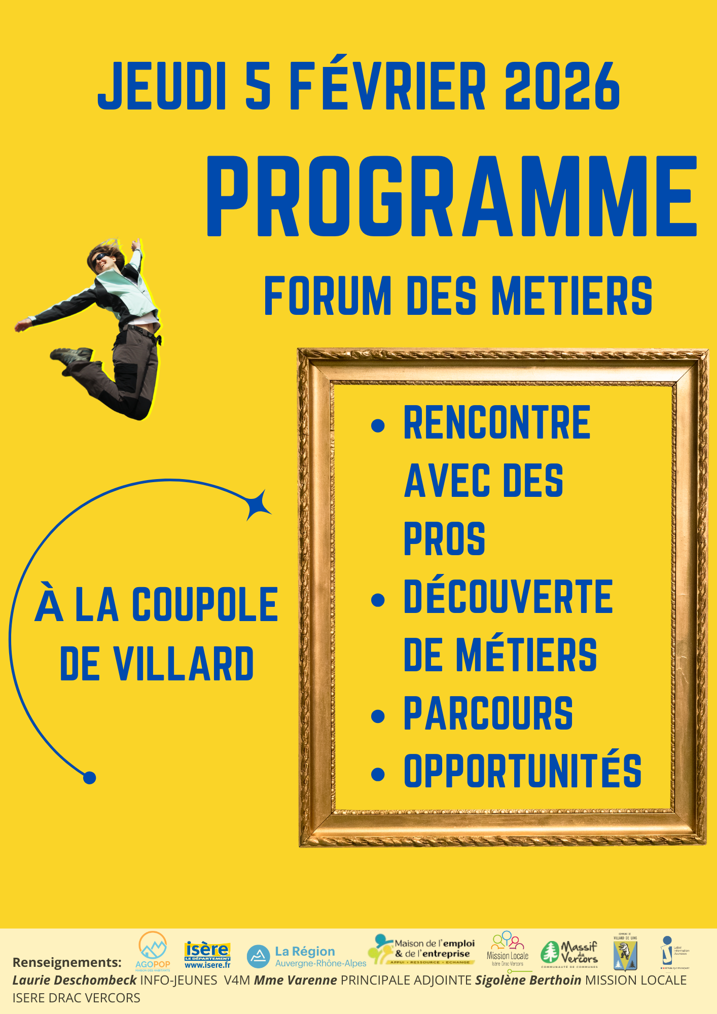 Dans le cadre de l’accompagnement à l’orientation des élèves, un Forum des métiers est organisé, le jeudi 5 février 2026, à la Coupole de Villard. Cet événement, ouvert à tous, s’inscrit dans une démarche essentielle d’information et de découverte des parcours professionnels.